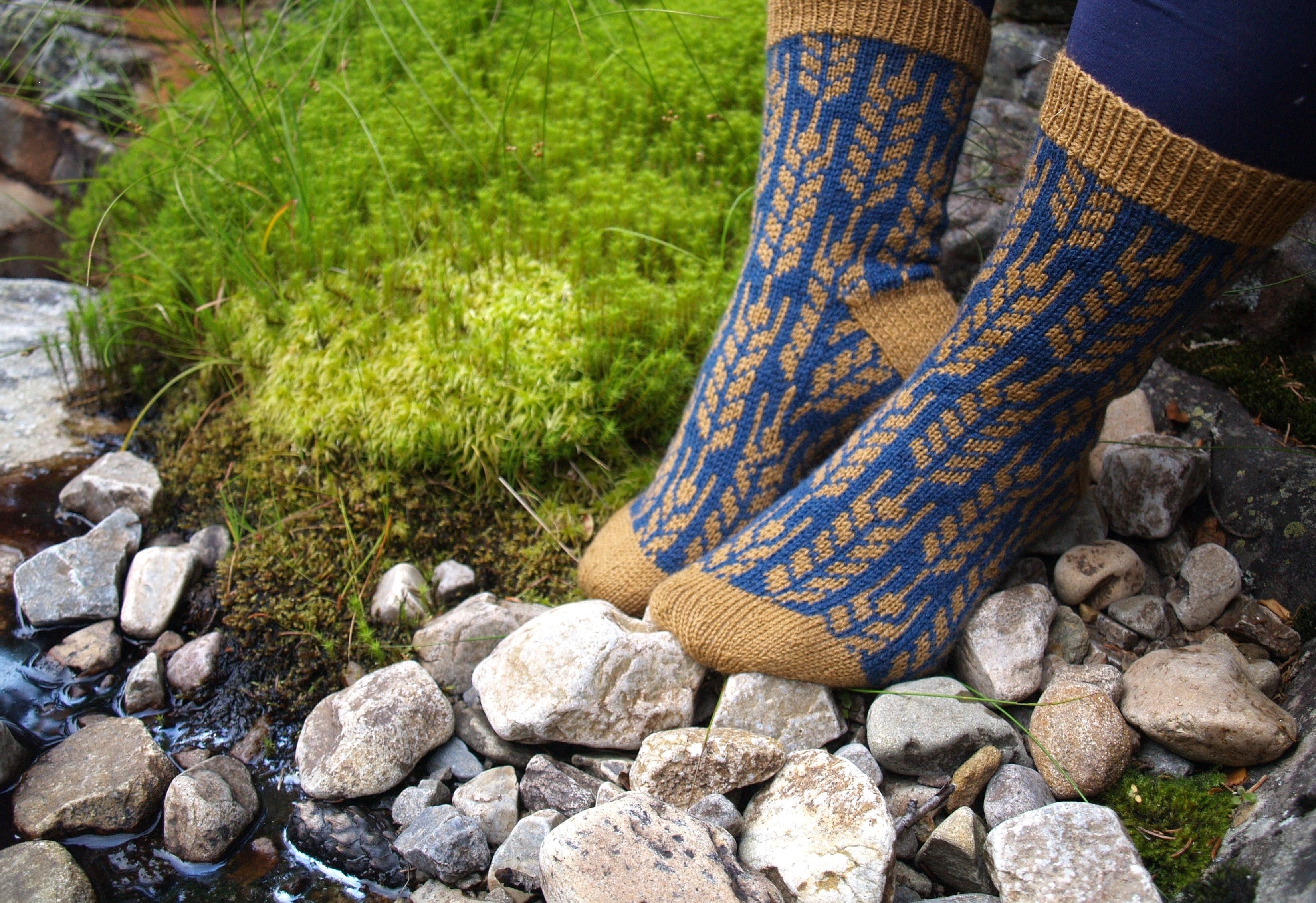 Lua er ei langlue i nissestil med valgfri dusk. Sokkene har fire størrelser og kan strikkes til store og små.