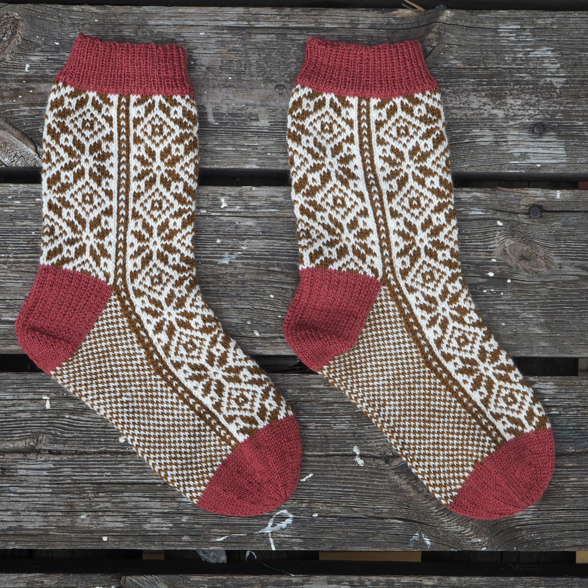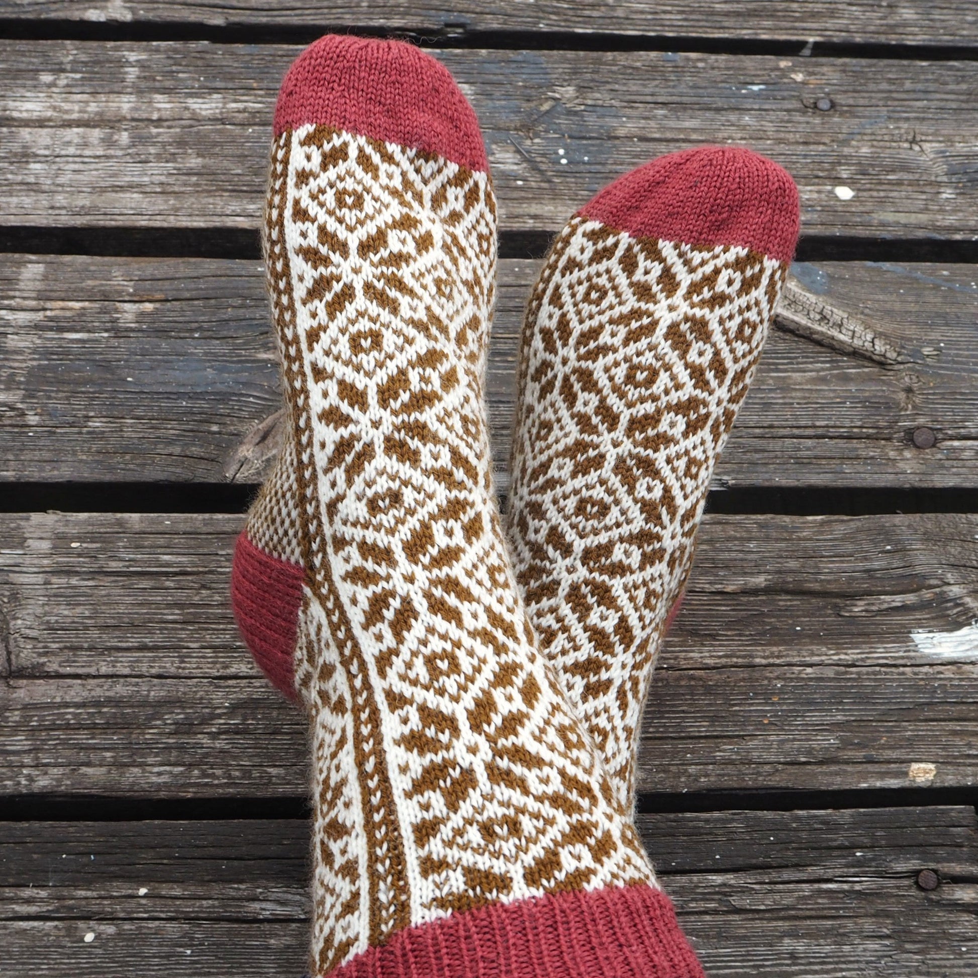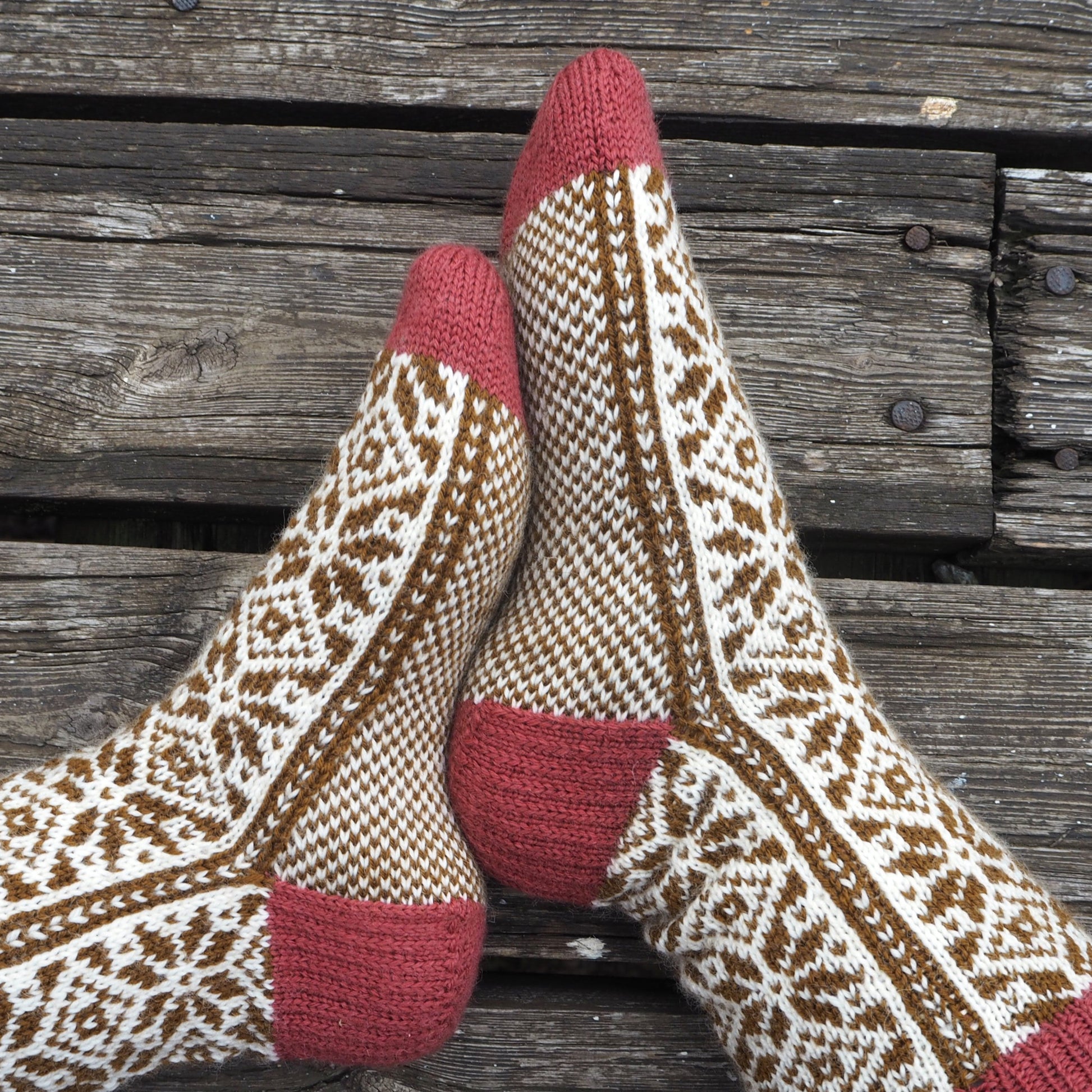 Garnforslag: Sandnes Sisu / Drops Fabel / Mayflower 1 class. Annet strømpegarn med løpelengde på ca. 175-210 meter per 50 g kan også brukes. Sokkene som er avbildet i oppskriften er strikket med Mayflower 1 class.