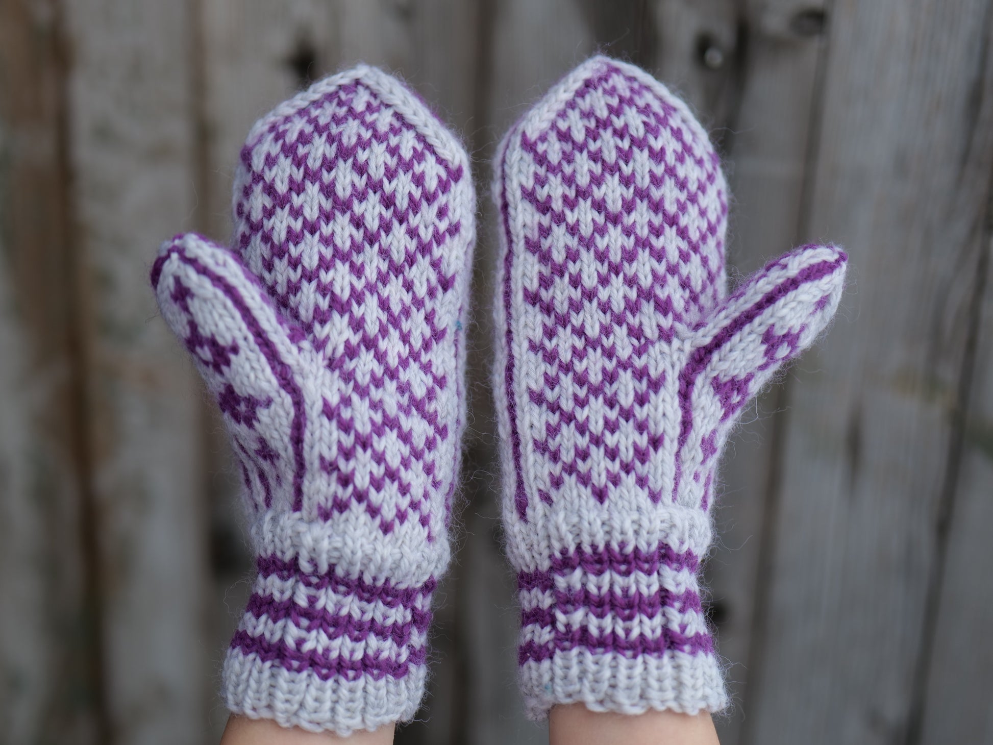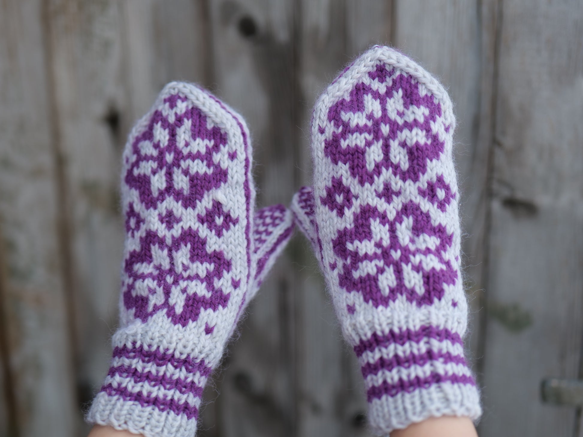 Oppskriften har en størrelse som kan endres ved å justere strikkefastheten slik at vottene kan passe både herre, dame og barn.