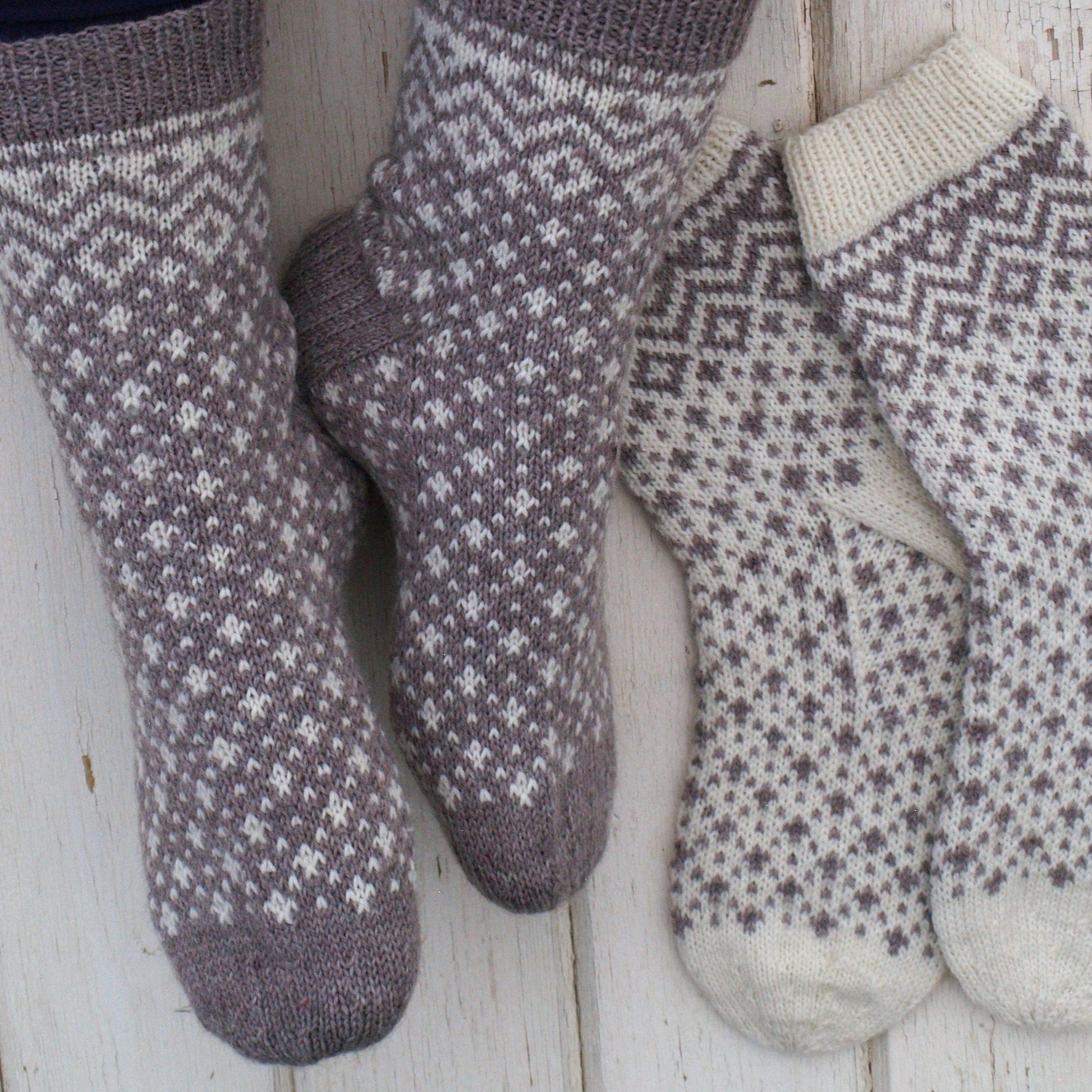 Garnforslag: Sandnes Sisu / Gjestal Silja / Viking Frøya o.l. Annet strømpegarn med løpelengde på ca. 175-210 meter per 50 g kan også brukes. Sokkene som er avbildet i oppskriften er strikket med Viking Frøya.