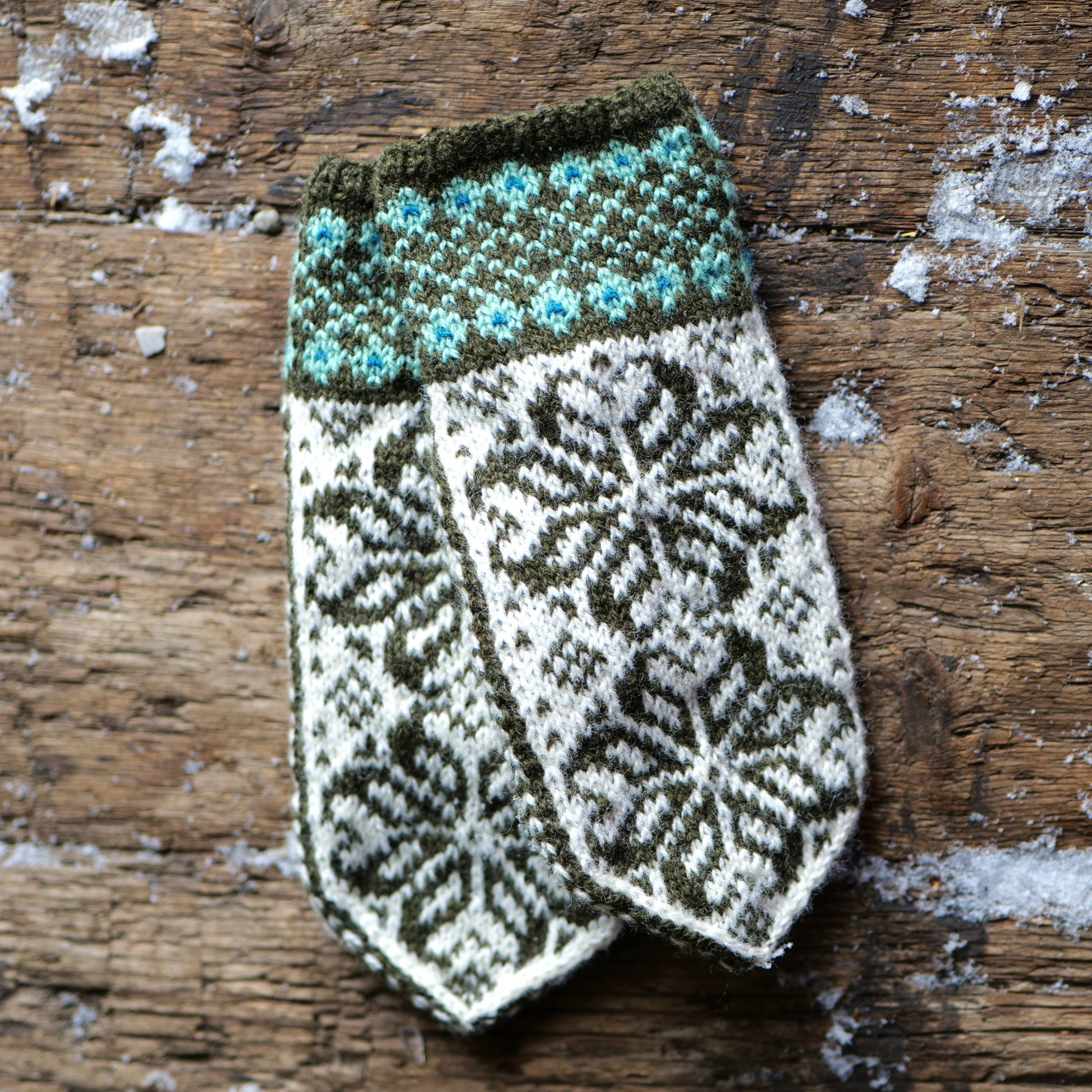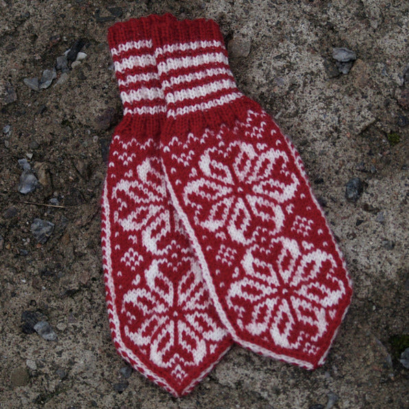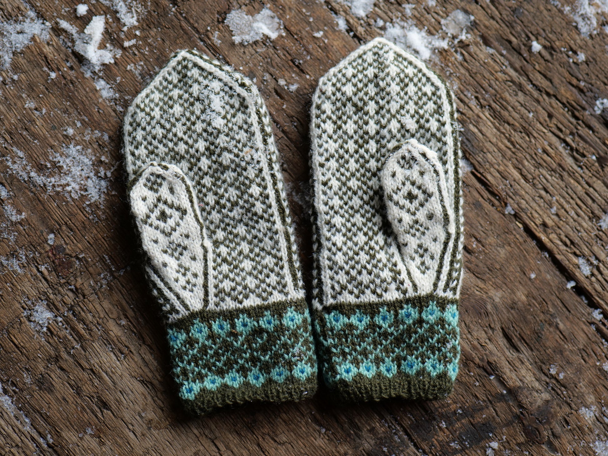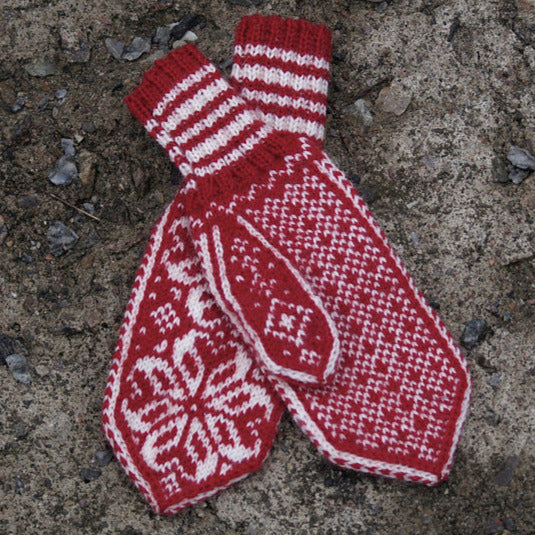 Turivottene er varme vintervotter, strikket i tradisjonelt norsk mønster og design.